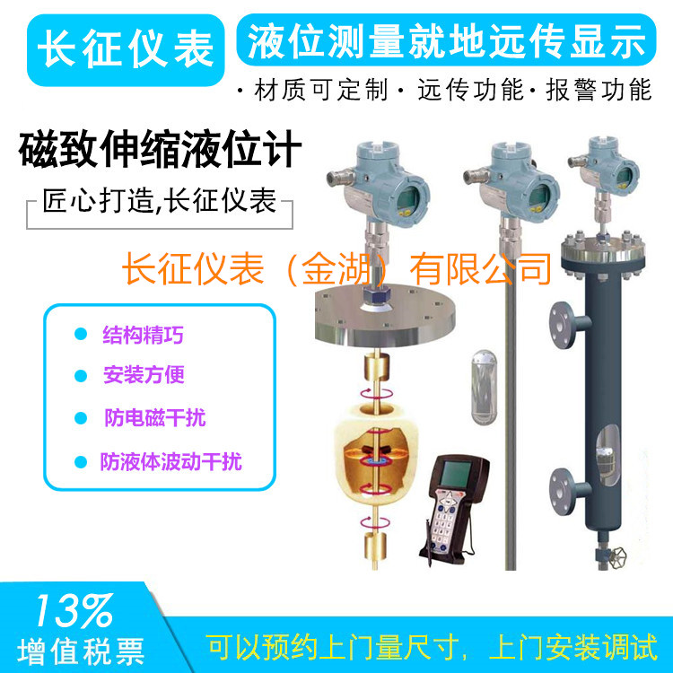 磁致伸縮液位傳感器是采用磁致伸縮原理制造的高精度、超長行程絕對位置測量傳感器。該產品由脈沖電路、波導線、回波信號單元、結構件和保護套管組成,不但可以測量運動物體的直線位移,而且可以給出運動物體的位移和速度模擬信號。